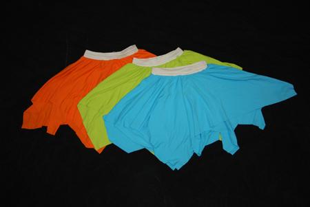 מק״ט חצאית משולשים (קצרות) מק"טים כתום -S1014, ירוק-S1015, תכלת -S1016 צבע כתום – קצר כמות 11 , צבע ירוק – קצר כמות 12 , צבע תכלת – קצר כמות 13 מתאים לגילאי א-ז